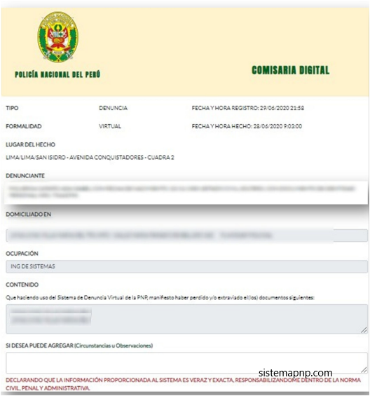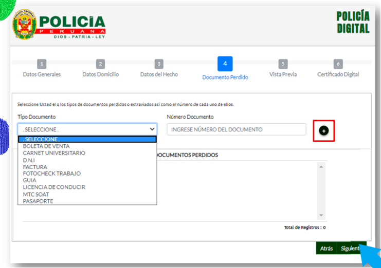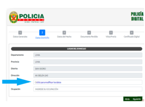 Tienes que verificar los datos, hay que estar seguro de haber ingresado todos los datos de la denuncia. Mira si estan todos los documentos que te han sustraído por robo o perdida. Este puento es importante porque cuando envies el formulario no se podra modificar